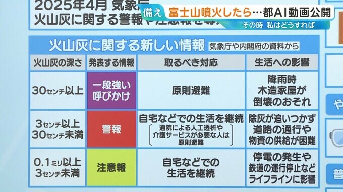 火山灰の深さに応じて、「発表する情報」「取るべき対応(避難など)」「生活への影響」など情報をまとめていますが、運用までには数年かかる見込みです。