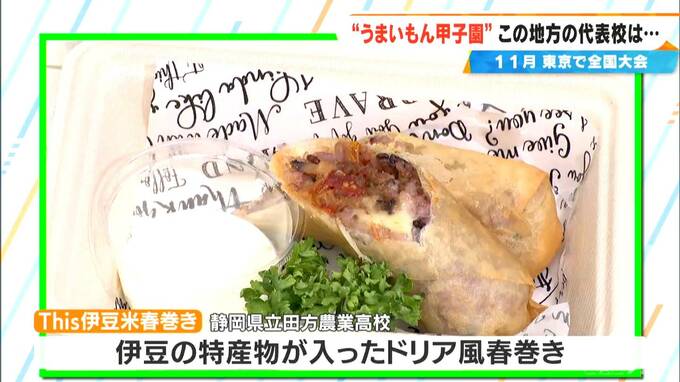 料理は地元食材を活かしたアイディアメニューで、静岡県の田方農業高校は、伊豆の特産物が入ったドリア風春巻き。