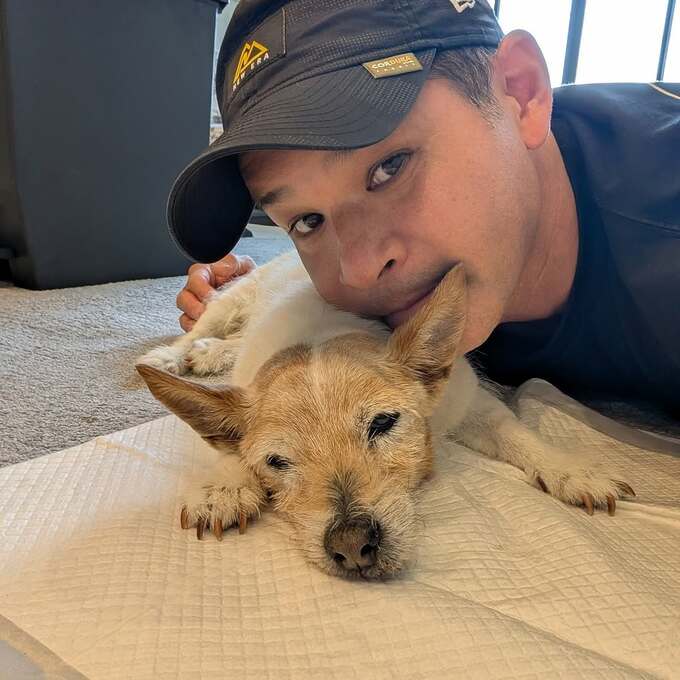 照英さんは「愛犬テン19歳10ヶ月 ジャックラッセルテリア(メス) ご飯を食べている姿を見ている事が幸せです」と綴ると、動画をアップ。