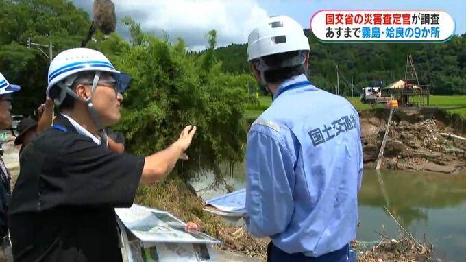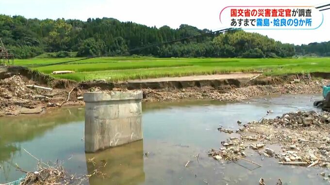 集中豪雨で学校前の橋が崩落した姶良市の竜門小学校では、現在、県と姶良市が復旧工事を進めていて、25日は国土交通省の災害査定官が復旧方針や技術的な助言をする緊急調査がありました。