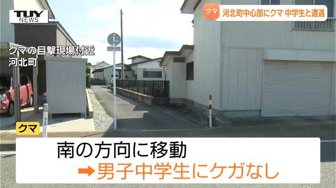 追いかけられたのは中学2年生の男子生徒で、その現場も住宅が立ち並ぶ場所でした。クマは男子中学生と遭遇したあと南の方向に移動し、男子中学生にけがはなかったということです。