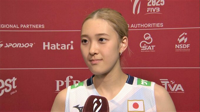オフェンスの部分でまだ課題もあるんですけど、勝負どころでしっかりと決め切らなきゃいけない場面を決めきれたところが自分自身良かったなと思うんですけど、まだまだみんなに頼ってる部分が多いと思うので、この世界バレーの期間でもしっかり成長したいなって思ってます。