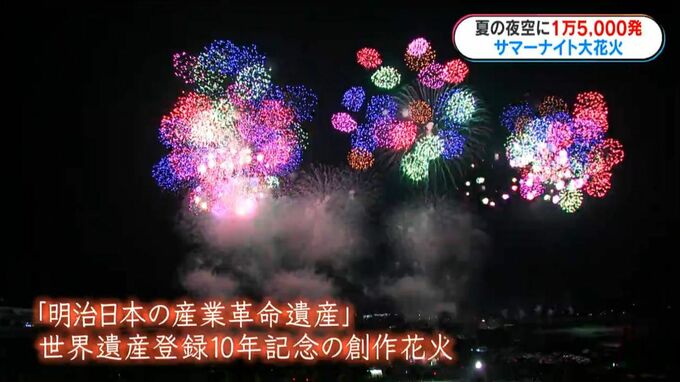 今年は、「明治日本の産業革命遺産」の世界文化遺産登録10年を記念した創作花火などおよそ1万5000発が夏の夜空を彩りました。
