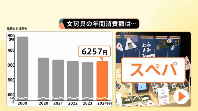 今日のお値段は、総務省がまとめた2024年の家計調査で明らかになった文房具の年間消費額は「6257円」(2人以上の家庭)です。