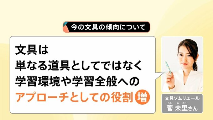 文具ソムリエールの菅未里さんは今の文房具の傾向について、「文具は単なる道具としてではなく、学習環境や学習全般へのアプローチとしての役割が増えている」といいます。