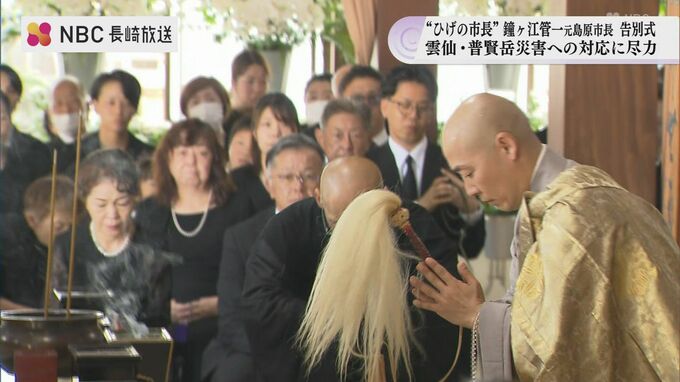 島原市の江東寺で行われた告別式には、遺族や島原市の関係者などおよそ200人が参列しました。