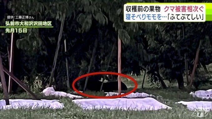 相次いで人が襲われた現場近くの畑では、7月15日にクマが目撃されました。目撃した人によりますと、シートに寝そべり収穫前の果物を食べていたということです。 ※倉島彩能記者「2か月連続で、弘前市の沢田地区で…