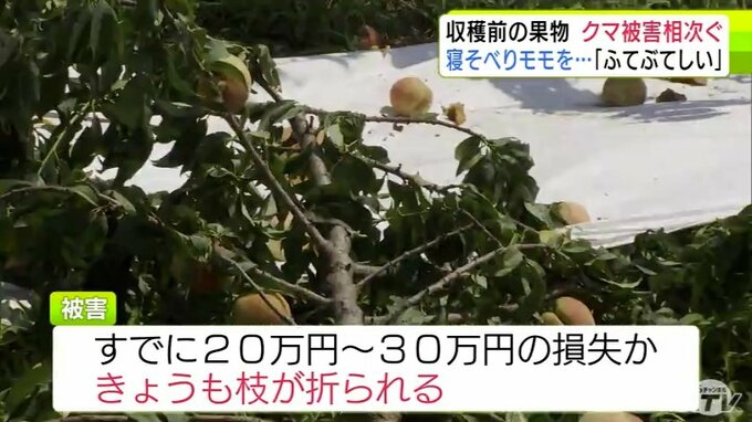 これまでに20万円から30万円の損失が出たとみられていて、さらに25日も収穫間近のモモが実った枝が折られていたことが分かり、被害は拡大しています。