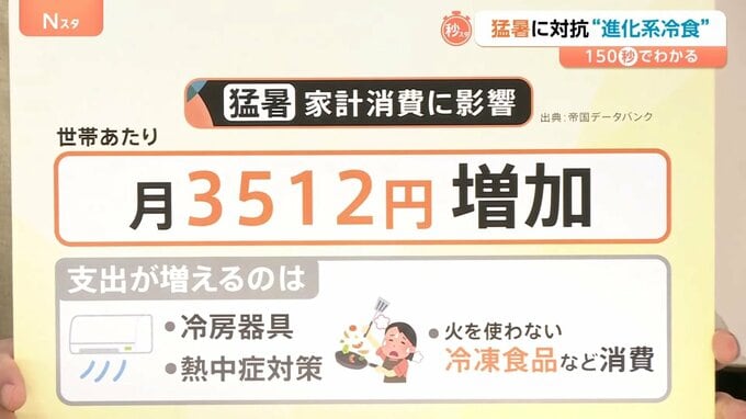▼冷房器具、▼熱中症対策、▼火を使わない冷凍食品で、支出が増えているそうです。
