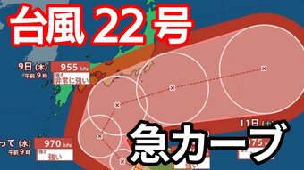 【台風情報】「台風22号」急カーブして日本列島沿岸部を西から東へ 予報円内に近畿・東海・関東地方が 今後の進路は?【6日午後0時45分 気象庁発表 10月6日~10月21日までの16日間天気シミュレーション】