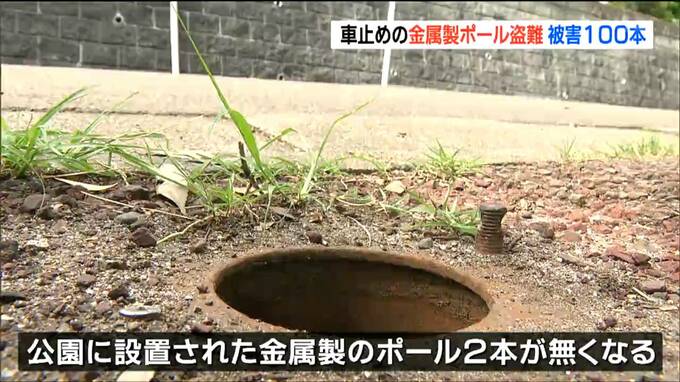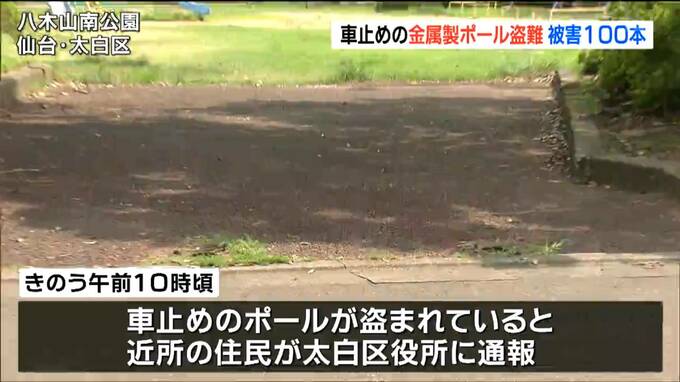 仙台市内の公園などに設置された車止めの金属製ポールが相次いで盗まれていることが分かりました。被害は今年6月以降、25日までで100本に上り、警察が窃盗の疑いで捜査しています。