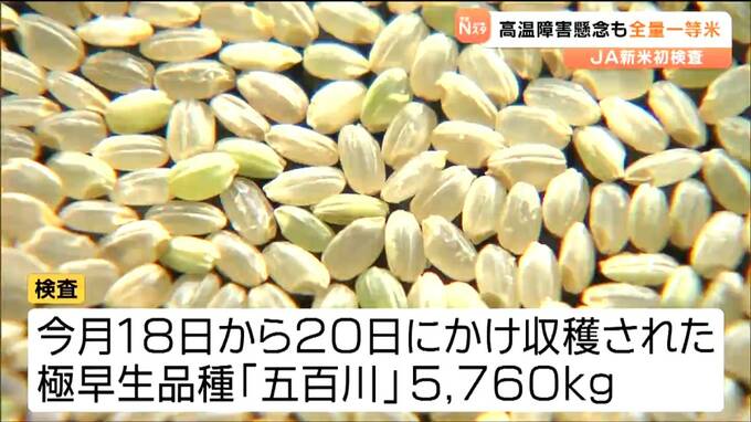 県内のJAグループで今年最初の新米の品質検査が26日、大崎市で行われました。今年は猛暑による高温障害が懸念されていましたが、検査の結果、最高品質の「一等米」と判定されました。大崎市三本木にあるJAの検査場…