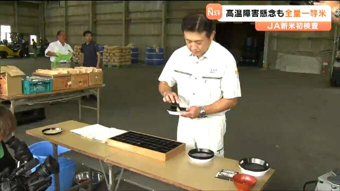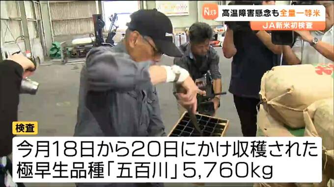 県内のJAグループで今年最初の新米の品質検査が26日、大崎市で行われました。今年は猛暑による高温障害が懸念されていましたが、検査の結果、最高品質の「一等米」と判定されました。