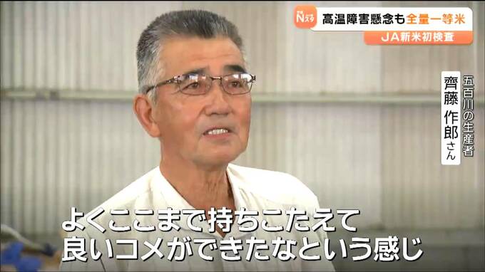 JA古川・齋藤俊之検査員:「きょう検査した五百川は高温障害も特に見られず、粒の張りもよくつやのある良いコメだった。」