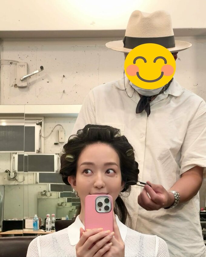 松島さんは他にも、撮影前のヘアスタイリング中の様子も公開。