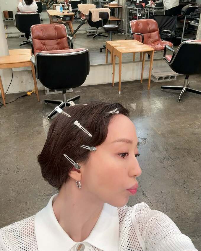 ヘアクリップで髪を留めている写真や、ヘアスタイリング中に、自撮りを楽しんでいる写真なども投稿。