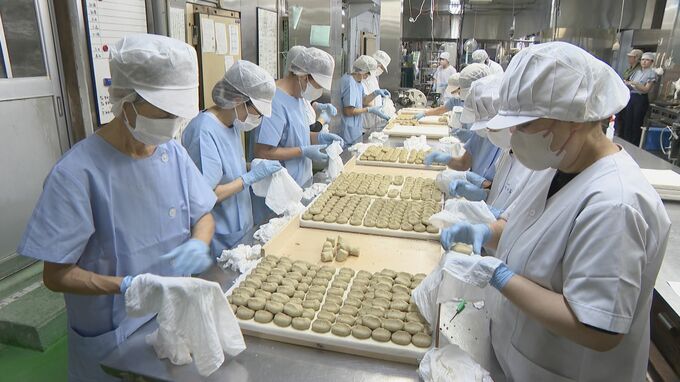 ことしは栗の仕入れ先の熊本県が、大雨や暑さに見舞われ収穫の遅れはあったものの、例年と同じ約600キロの栗を入荷し、きょう一日で5000個ほどの「栗きんとん」が作られました。店頭では1つ291円でさっそく販売も始まりました。