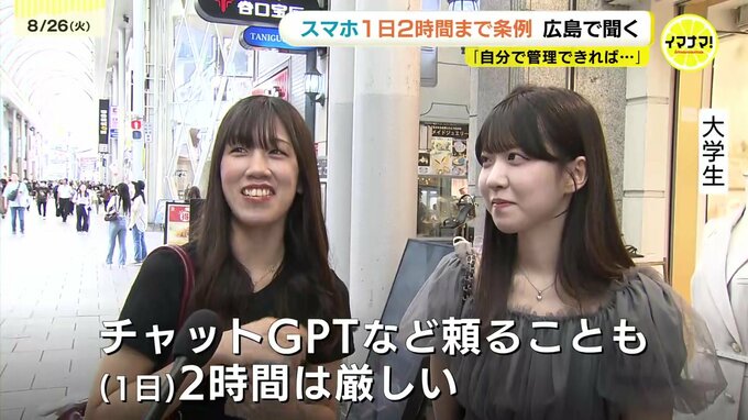 「スマホとの向き合い方を考え直すきっかけとなるのか注目される条例。広島の若い世代に反応を聞きました」