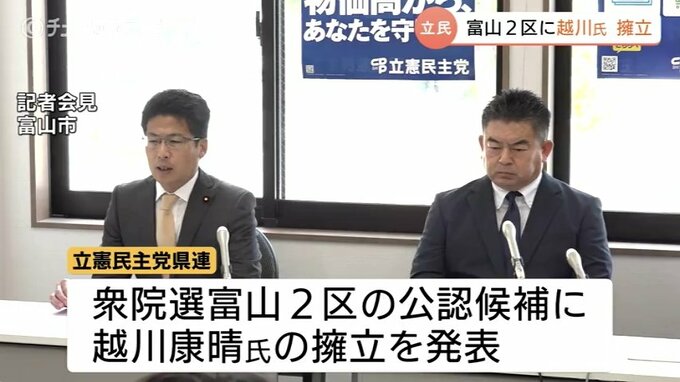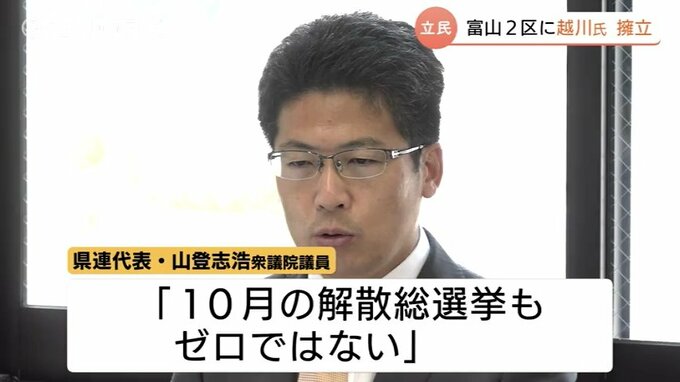 立憲民主党富山県連は26日、次期衆院選の富山2区に、3度目の国政挑戦となる越川康晴氏の擁立を決定しました。解散総選挙も視野に、支持母体を同じくする国民民主党との候補者調整を進める構えです。