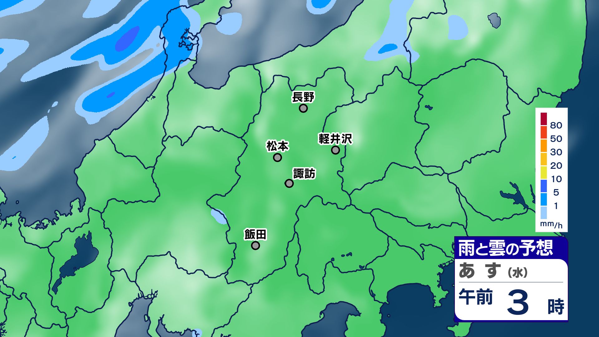 3. 【大雨情報】長野県 26日夜遅くにかけ “ゲリラ雷雨”に注意 【雨のシミュレーション画像掲載】北部・中部80ミリ 南部60ミリ(~27日午後6時・多い所)長野地方気象台