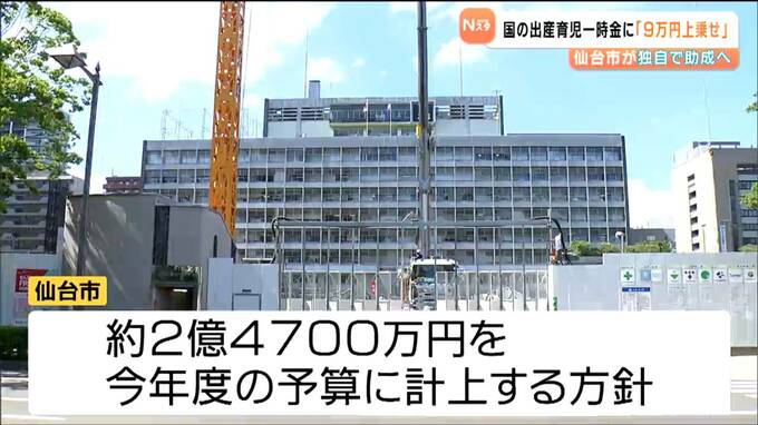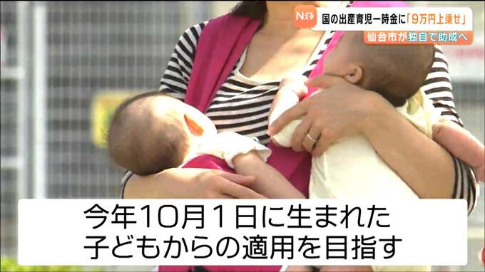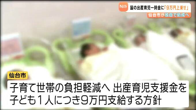 仙台市は、子どもが生まれた際に原則50万円を受け取れる国の出産育児一時金に、市独自で9万円を上乗せして助成する方針を示しました。