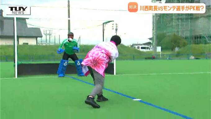 さあ緊張の一瞬。町長と渋谷選手の一騎打ち。(まるでPK対決!キックではありませんが)