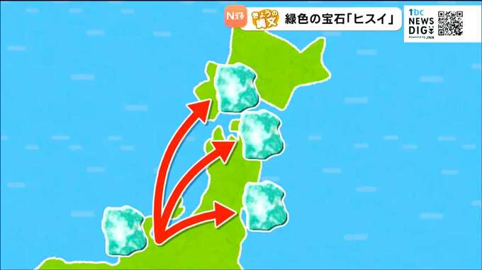 新潟県西部の糸魚川周辺で取れたものが各地に流通していたと考えられていますが、見つかる遺跡は限られています。