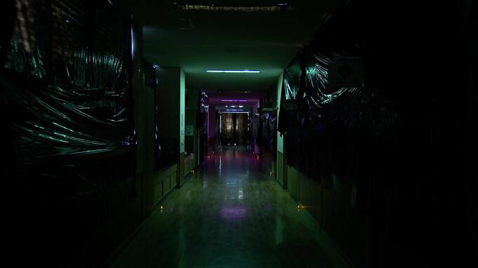 校舎の中では、マネキンをライトアップ。客を迎える準備が整いました。