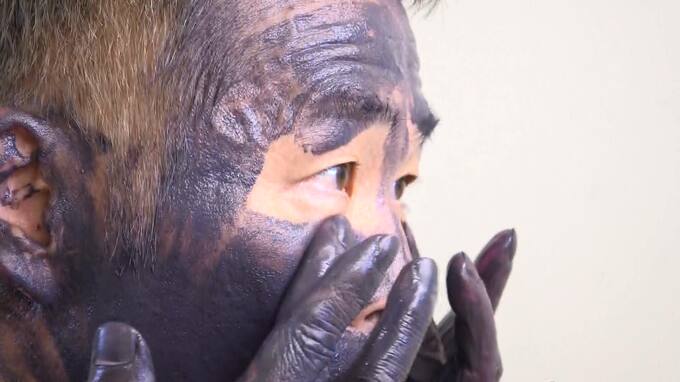 お化け役のお父さん「いまから顔ば塗らんといかんのですよ」