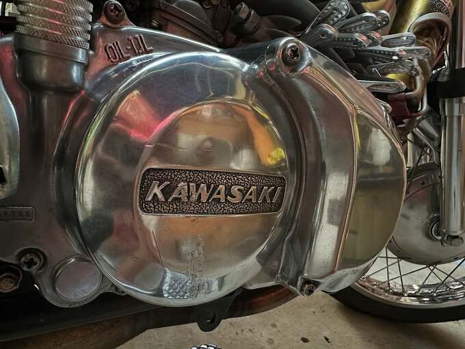 ヒロシさんが投稿したのは、カワサキのロゴが刻まれた、ビンテージバイクの金属のパーツをクローズアップした画像。丁寧に磨かれ、光沢を放っているのがわかります。