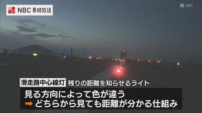 滑走路の残りの距離を知らせる「滑走路中心線灯」。見る方向によって色が違い、どちらから見ても残りの距離が分かるようになっています。