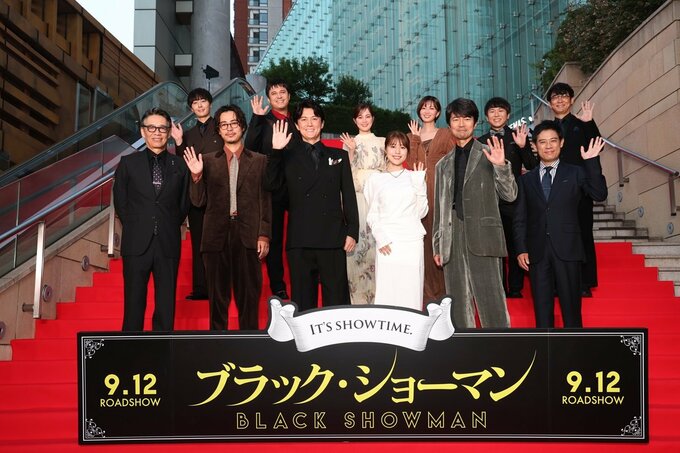 福山雅治さん主演の映画「ブラック・ショーマン」完成披露試写会が行われ、福山さんのほか、有村架純さん、成田凌さん、生田絵梨花さん、木村昴さん、ハナコ・秋山寛貴さん、犬飼貴丈さん、岡崎紗絵さん、伊藤淳史さん、生瀬勝久さん、仲村トオルさんの豪華俳優陣が登壇しました。