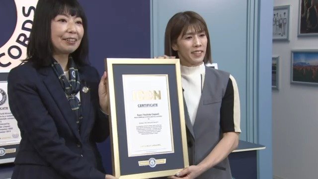 レスリングの元日本代表で五輪3連覇の吉田沙保里さん(42)が、ギネス世界記録の“殿堂入り“を意味する「ギネス世界記録 ICON(アイコン)」に認定され、都内で認定証の贈呈式が行われた。