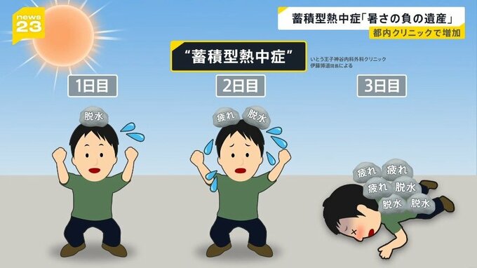 クリニックではお盆休み以降、“蓄積型”や症状が長引く熱中症の患者が増えていて、伊藤医師は引き続き注意を呼びかけています。