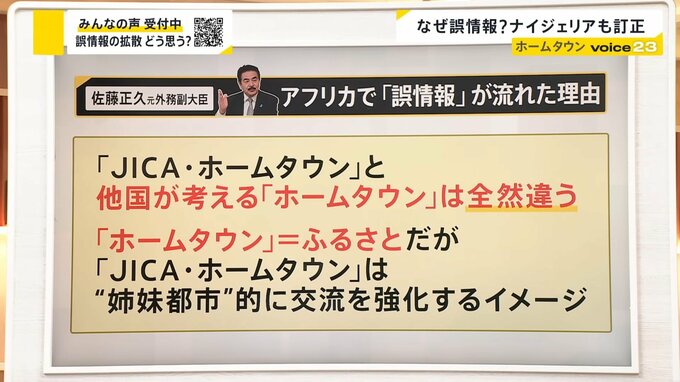 「『JICA・ホームタウン』と他の国が考える『ホームタウン』は全然違う。『ホームタウン』=ふるさとだが、『JICA・ホームタウン」は“姉妹都市”的に交流を強化するイメージ」