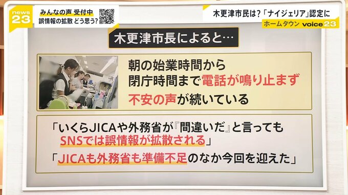 市長は、「いくらJICAや外務省が『間違いだ』と言っても、SNS上では誤情報が拡散される。JICAも外務省も準備不足のなか今回を迎えた」とおっしゃっています。