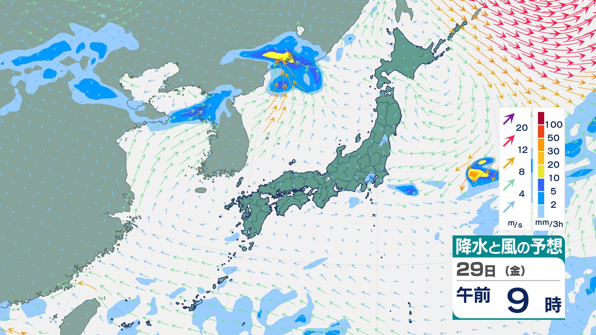 【気象情報】27日は北日本から西日本の広範囲で大気不安定…東北や関東甲信では100ミリの大雨予想、土砂災害などに警戒【雨と風のシミュレーション】 チューリップテレビ 2025年8月27日(水) 06:20 国内 天気 29日(金)の雨風シミュレーション