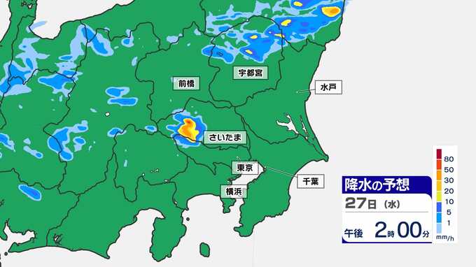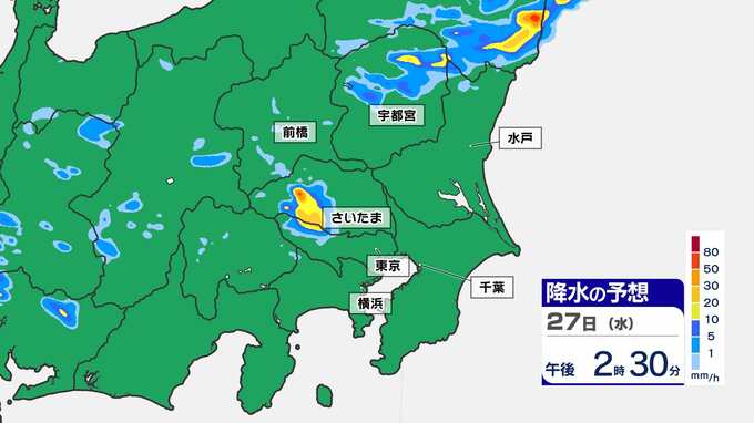 【東京首都圏 ゲリラ雷雨注意】都心でも雨雲発生の予想 気象庁「大雨情報」【雨と発雷確率のシミュレーション】東京・神奈川・埼玉・千葉・群馬・栃木・茨城 南日本放送 2025年8月27日(水) 12:00 国内 天気 27日(水)雨シミュレーション(30分ごと) 特に山間部では天気が変わりやすく、上流で多くの雨が降り下流の河川が急に増水してしまうことが考えられます。夏休み期間中で、山や川で過ごされている皆さんは、最新の雨雲の状況をチェックしておきましょう。
