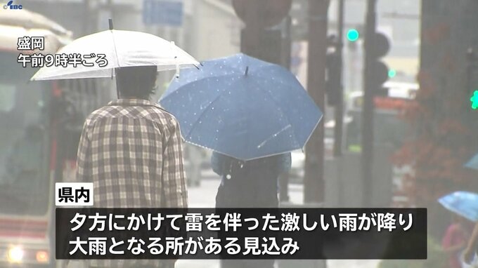 盛岡地方気象台によりますと、27日の県内は夕方にかけて大気の非常に不安定な状態が続いて雷を伴った激しい雨が降り、大雨となる所がある見込みです。