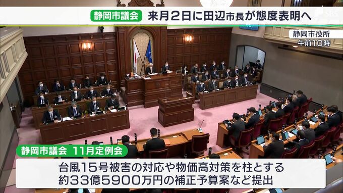 静岡市議会11月定例会が11月24日に開会し、台風15号の被災者支援などを盛り込んだ予算案が提出されました。会期中には、田辺信宏市長が次の市長選への態度を表明する見通しです。24日に始まった静岡市議会の11月定…