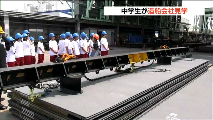 次世代を担う中学生に海に関わる仕事に関心を持ってもらおうと26日、宮城県気仙沼市内の造船会社で見学会が開かれました。