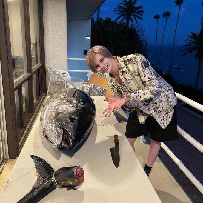 この投稿にフォロワーからは「すしざんまいっ」「一刀両断にした時のマットさんの口が可愛い」「景色も最高ですね ってか、お部屋のベランダで解体ショー??」とコメントが寄せられていました。