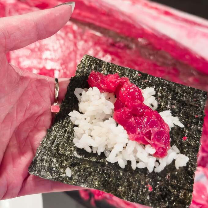 捌いた大量のマグロは、見事な刺身や握り、手巻き寿司となって、食卓を彩っていました。