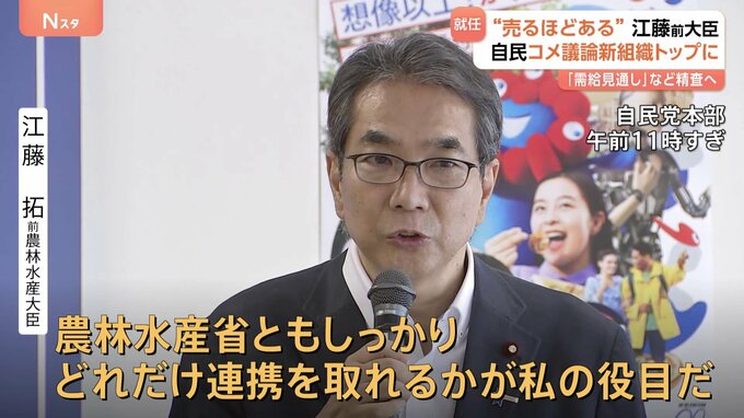 「コメ失言」で事実上、更迭された江藤前農水大臣。自民党でコメ政策などを中心に議論する新しい組織のトップに就任しました。江藤拓 前農林水産大臣「農政は正念場を迎えております。私の我を通すということでは…