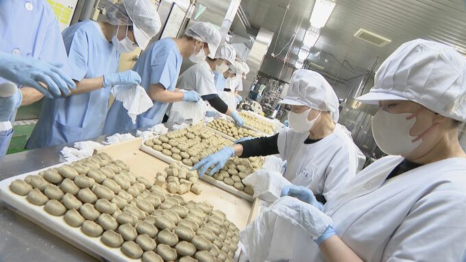 きのうは、朝入荷した熊本産の栗を原料に。きのう一日で約5000個の栗きんとんが出来上がりました。ことしの栗の出来は、暑さなどの影響でやや小ぶりですが、甘みが強いということです。
