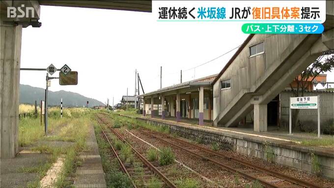 新潟県の北部を線状降水帯が襲った“県北豪雨”から3年が経ち、JR東日本は、一部区間の運休が続くJR米坂線の復旧方法の具体案を沿線自治体らに説明しました。【JR東日本新潟支社 羽中田淳 企画総務部長】「改めて…