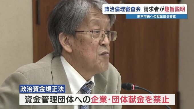 熊本市の大西一史市長への献金を巡る2回目の政治倫理審査会が開かれ、市民団体の代表たちが政倫審の開催を請求した理由などを述べました。政治資金規正法は企業・団体による資金管理団体への献金を禁止しています…