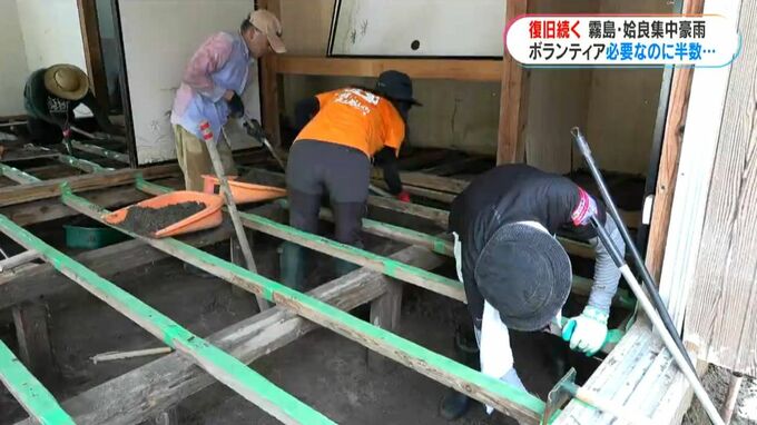 霧島市社会福祉協議会によりますと、きょう27日に受け付けたボランティアの数は39人で、復旧に必要な59人の6割にとどまりました。人手の不足はお盆明けから目立ち、希望数の半分に満たない日もあるといいます。