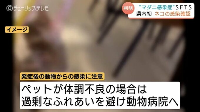 富山県はSFTSを発症したイヌやネコから人への感染事例もあるとし、ペットが体調不良の場合は過剰なふれあいを避け動物病院でみてもらうよう呼びかけています。
