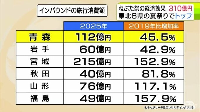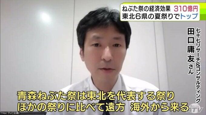 それによりますと、青森ねぶた祭は310億円とコロナ禍前と比べると、約10%増加、2位に100億円以上の差をつけています。